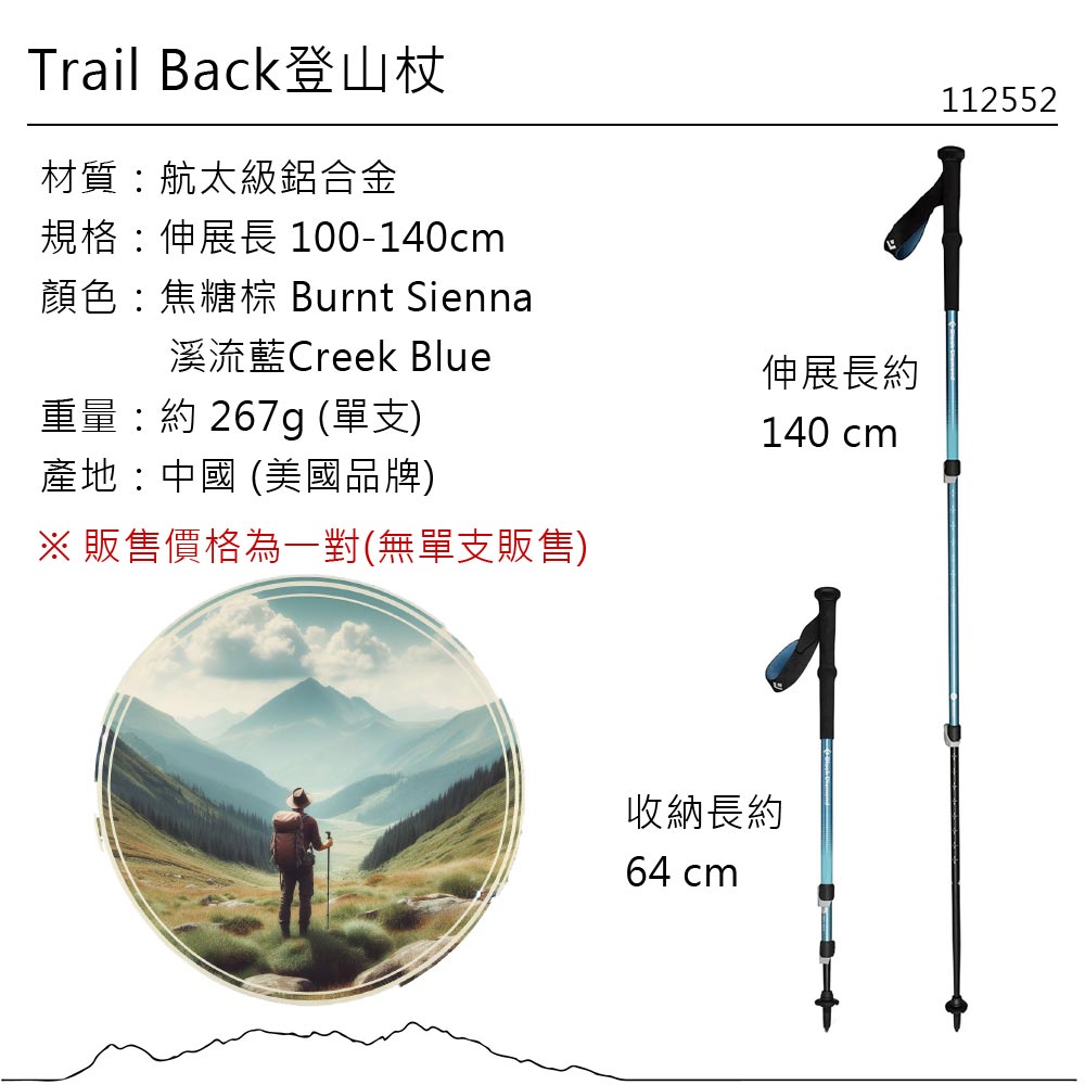 Black Diamond S24 TRAIL BACK TREK POLES 登山杖 112552