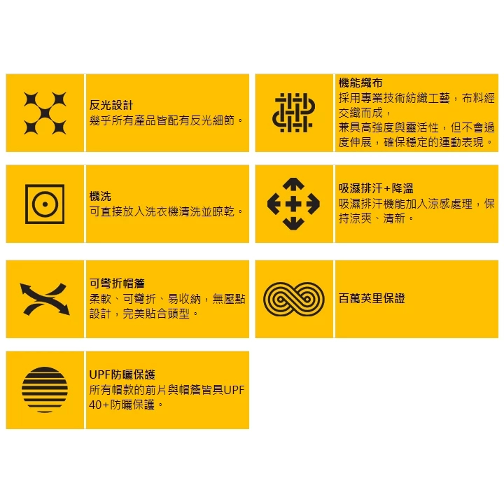 帽前的經典條紋Logo採用反光設計,提升從黃昏到黎明的低光環境能見度,